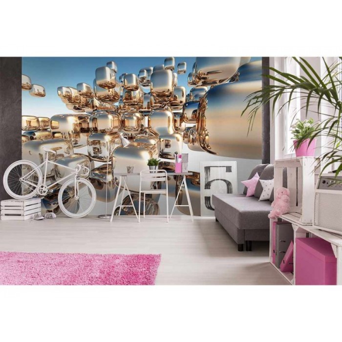 MS-5-0284 Fototapetă vlies pentru perete Cuburi argintii - 375 x 250 cm