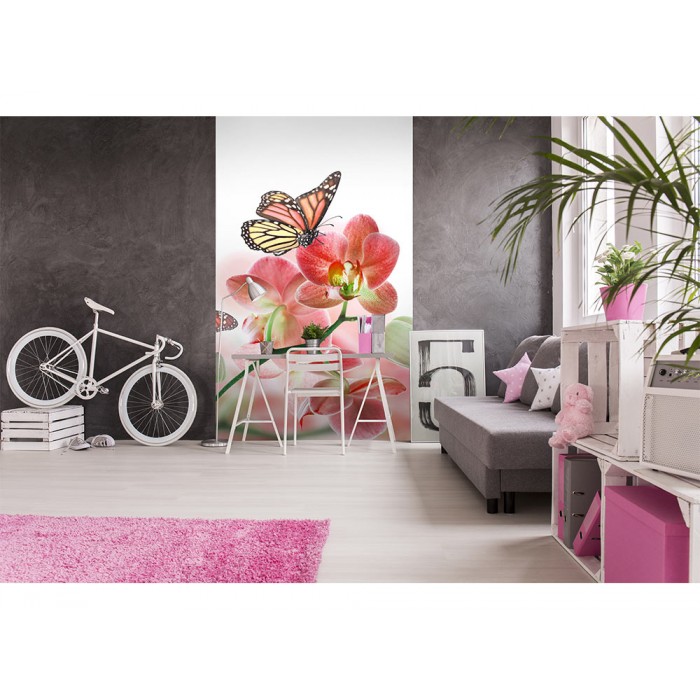 MS-2-0146 Fototapetă vlies pentru perete Fluturi și orhidee - 150 x 250 cm