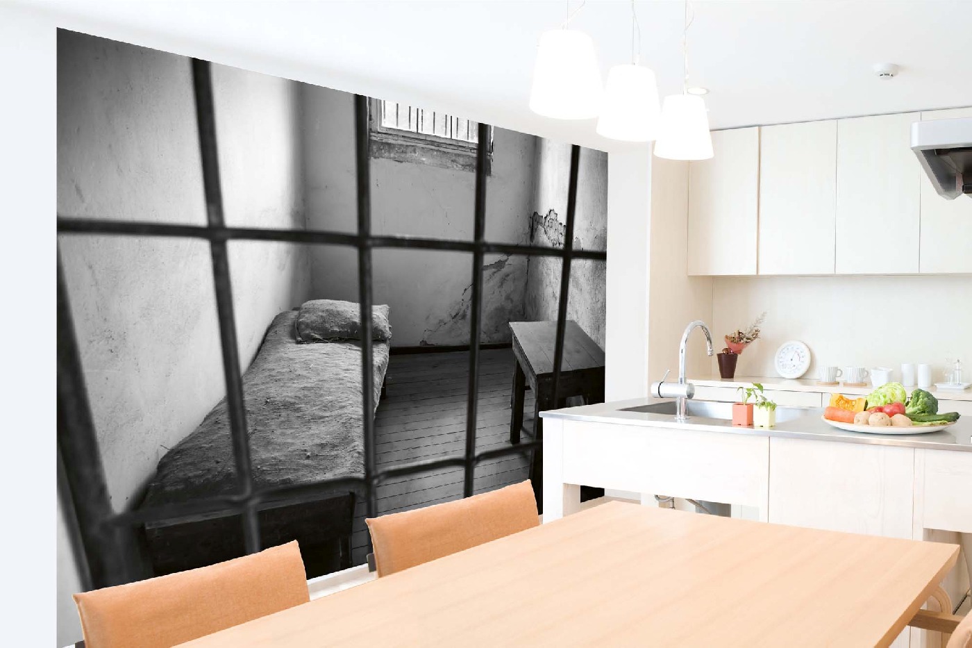MS-5-0959 Fototapetă vlies pentru perete Pat într-o celulă - 375 x 250 cm