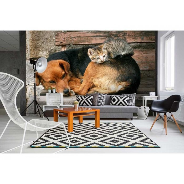 MS-5-0221 Fototapetă vlies pentru perete Pisică și câine - 375 x 250 cm