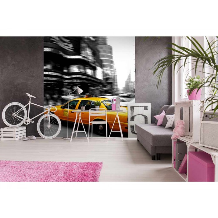 MS-3-0007 Fototapetă vlies pentru perete Taxi galben - 225 x 250 cm