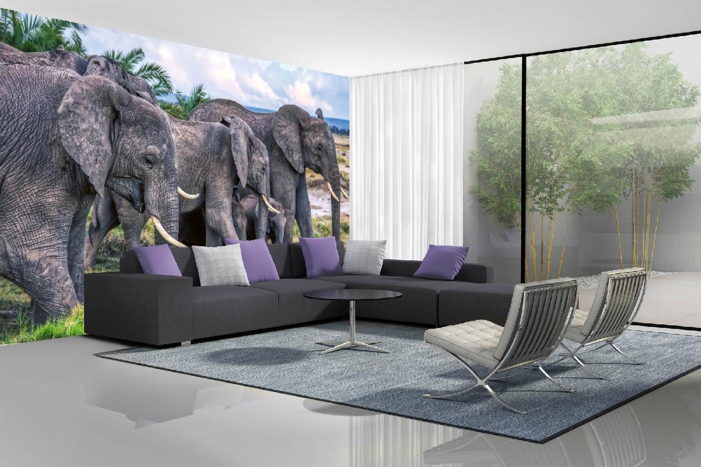 MS-5-0482 Fototapetă vlies pentru perete Turmă de elefanți - 375 x 250 cm