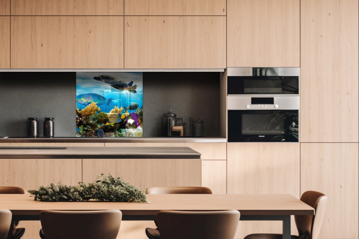 Plexiglas pentru peretele de bucătărie Pește în ocean – 60 x 60 cm