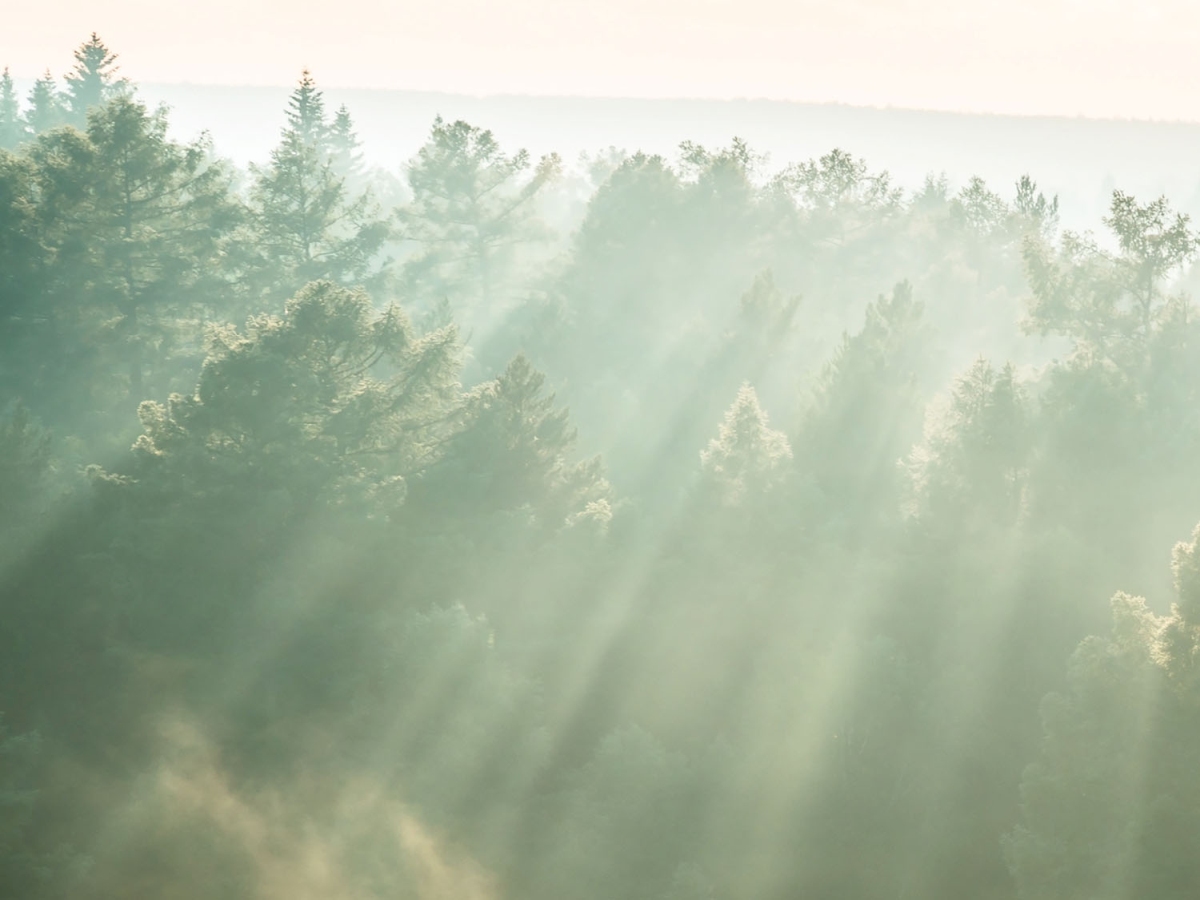 Plexiglas pentru peretele de bucătărie Raze de soare peste pădure – 80 x 60 cm
