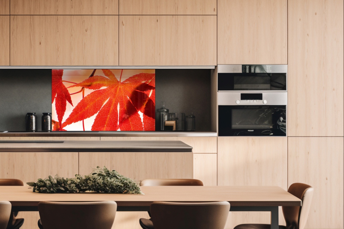 Plexiglas pentru peretele de bucătărie Frunze roșii – 100 x 60 cm