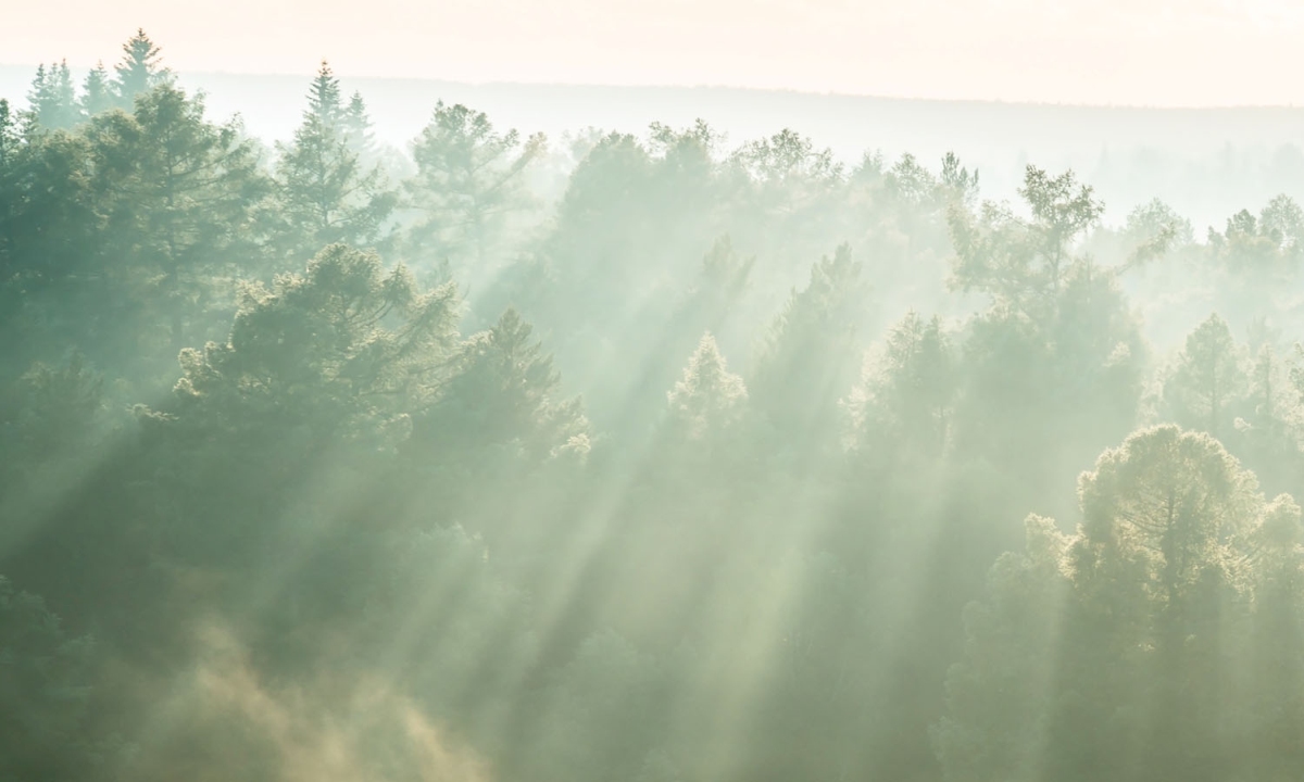 Plexiglas pentru peretele de bucătărie Raze de soare peste pădure – 100 x 60 cm