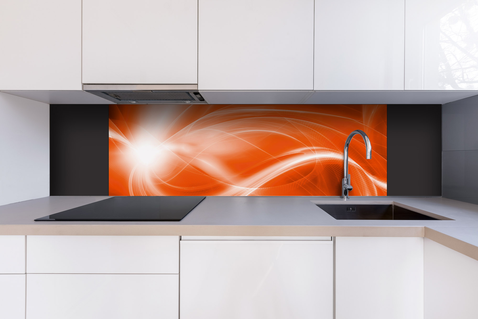Placă decorativă dibond pentru bucătărie Abstract portocaliu - 180 x 60 cm