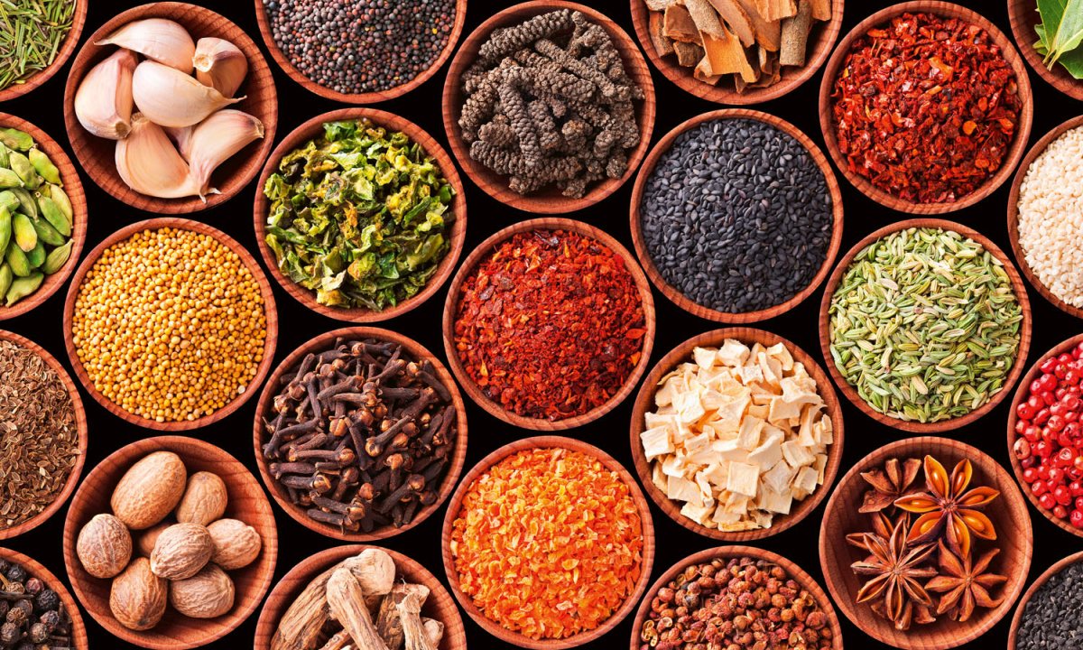 Placă decorativă dibond pentru bucătărie Boloane pentru condimente - 100 x 60 cm