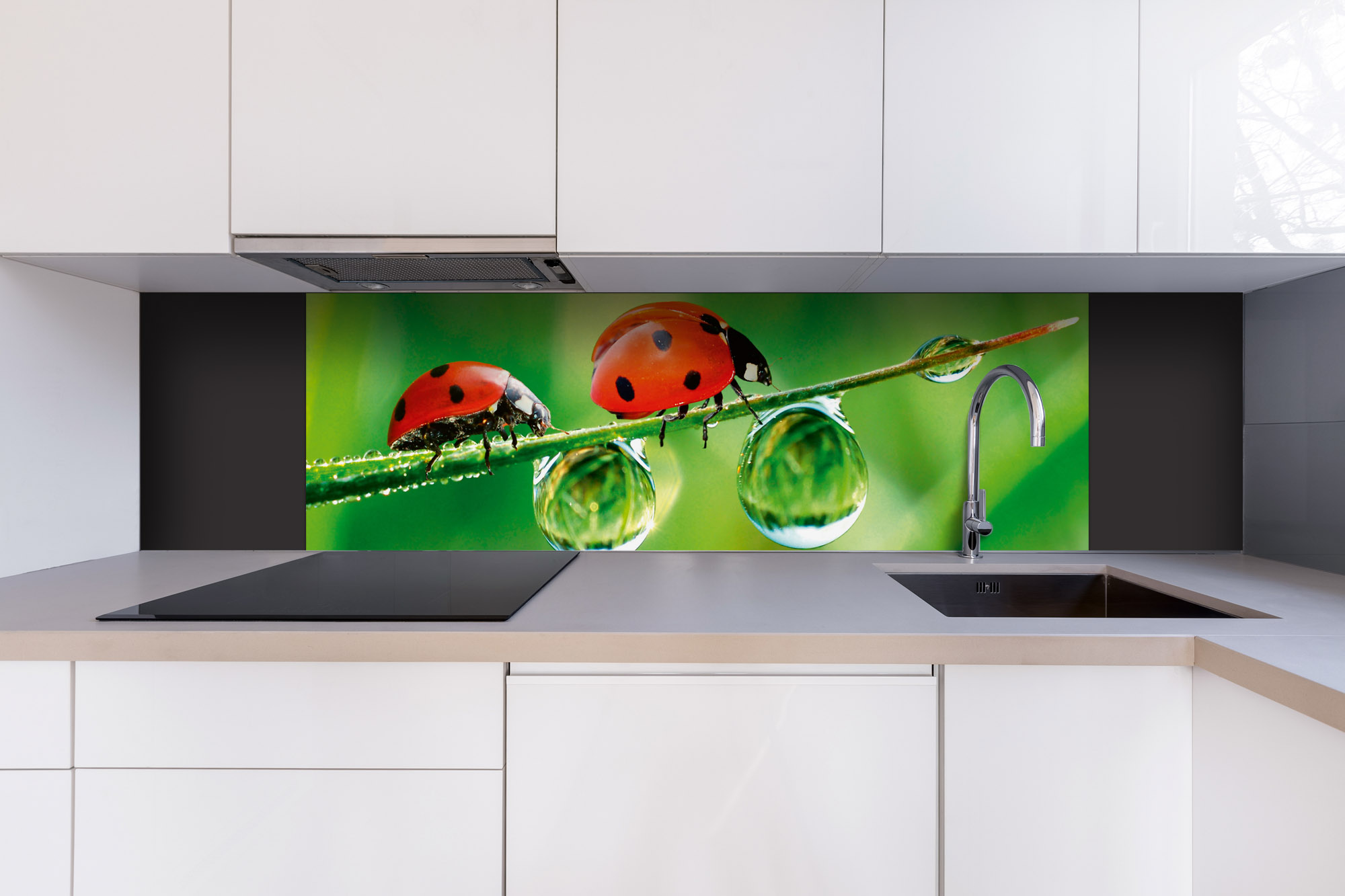 Placă decorativă dibond pentru bucătărie Buburuză - 180 x 60 cm