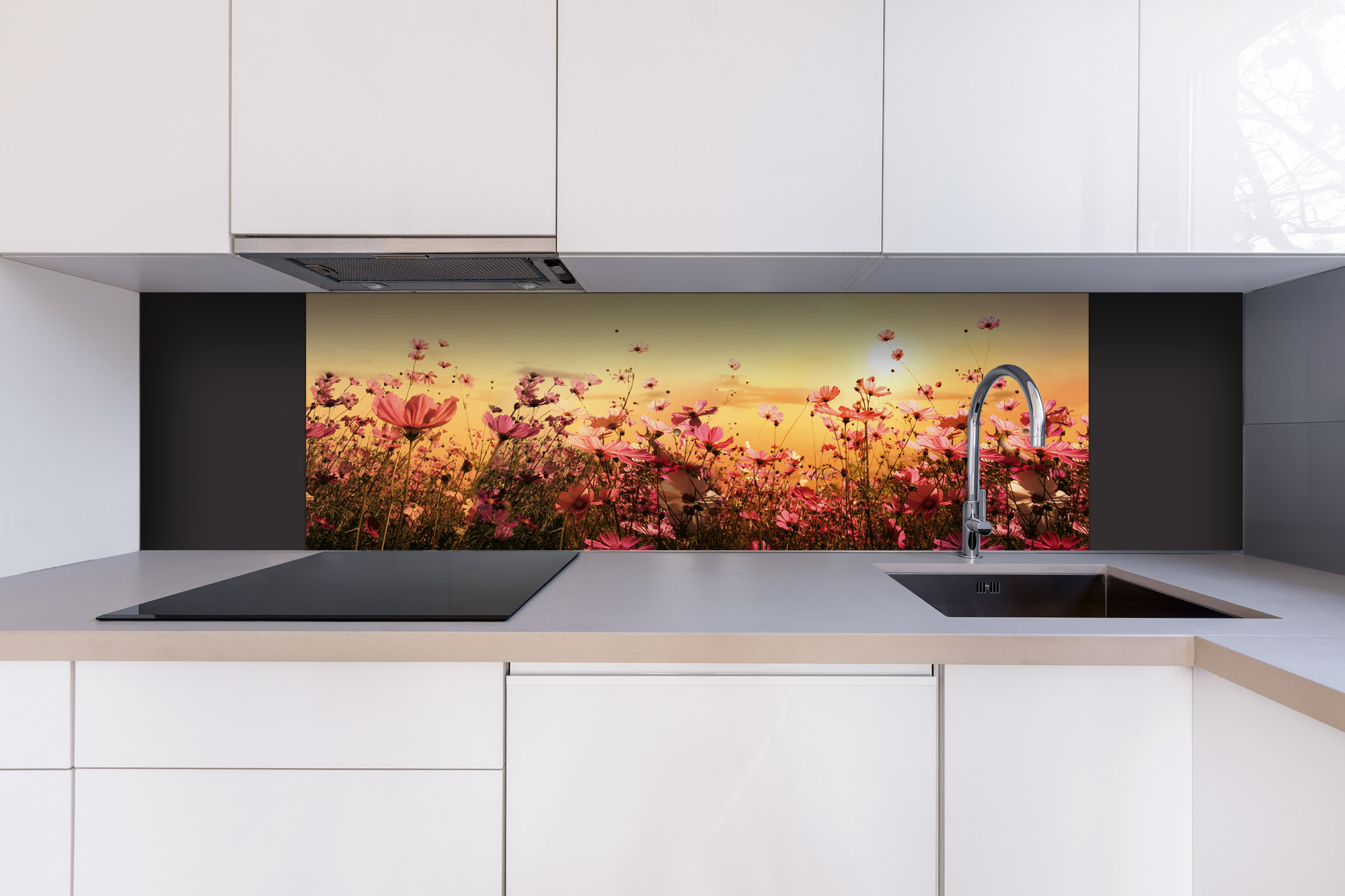 Placă decorativă dibond pentru bucătărie Câmp de flori - 180 x 60 cm