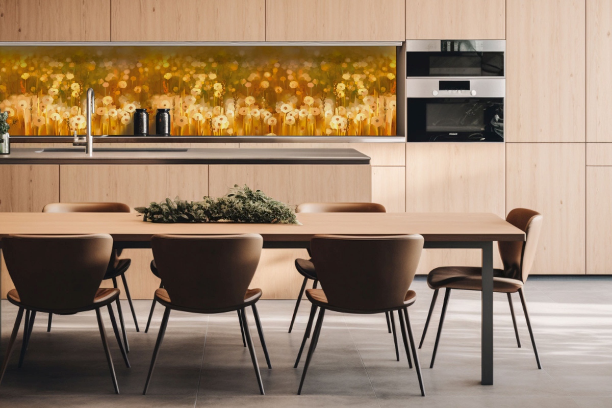 Placă decorativă dibond pentru bucătărie Câmp de păpădie vintage - 260 x 60 cm
