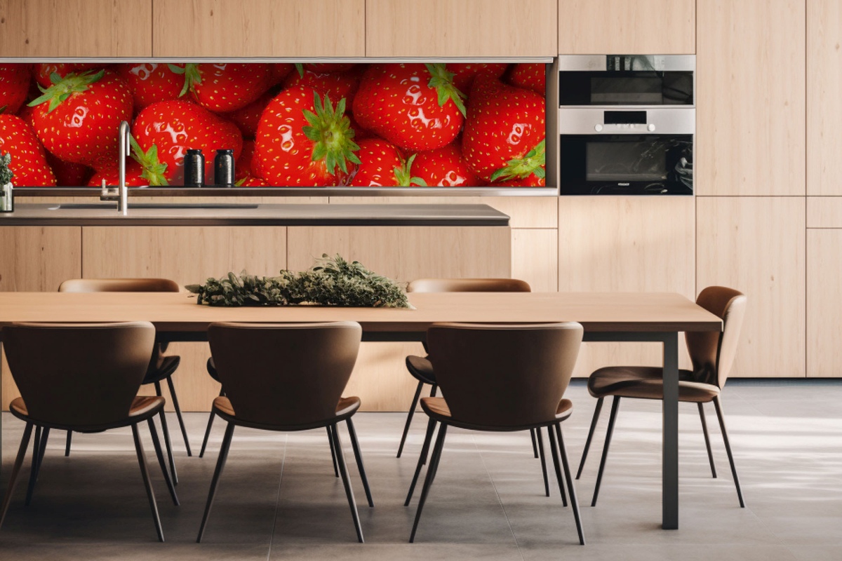 Placă decorativă dibond pentru bucătărie Căpșuni - 260 x 60 cm