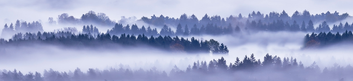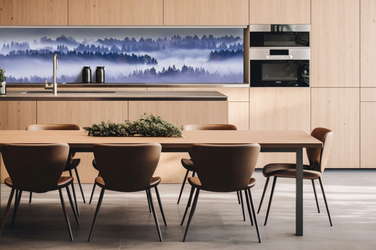 Placă decorativă dibond pentru bucătărie Ceață între copaci - 260 x 60 cm
