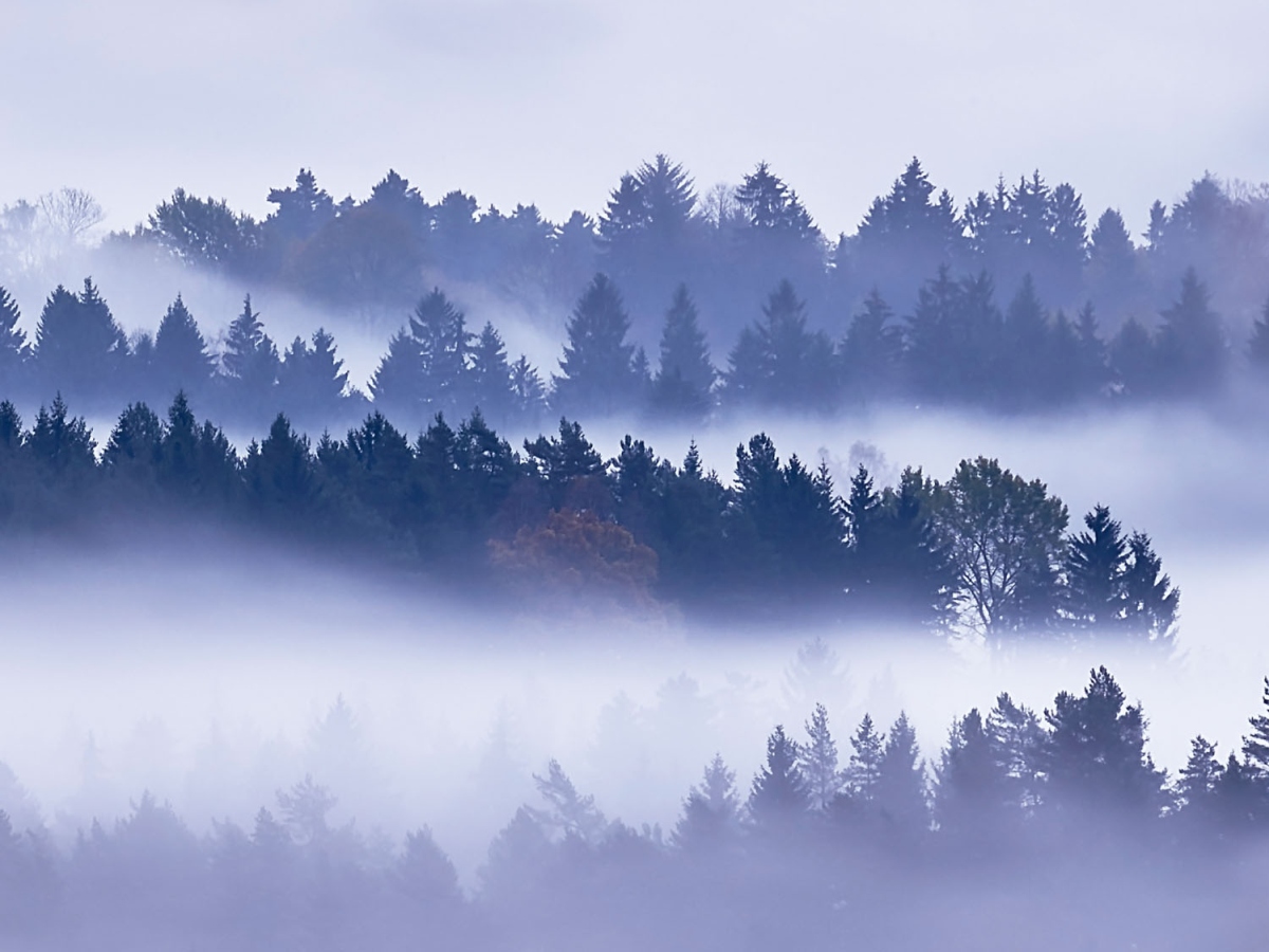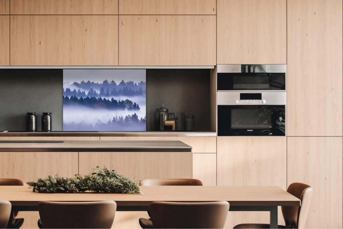 Placă decorativă dibond pentru bucătărie Ceață între copaci - 80 x 60 cm