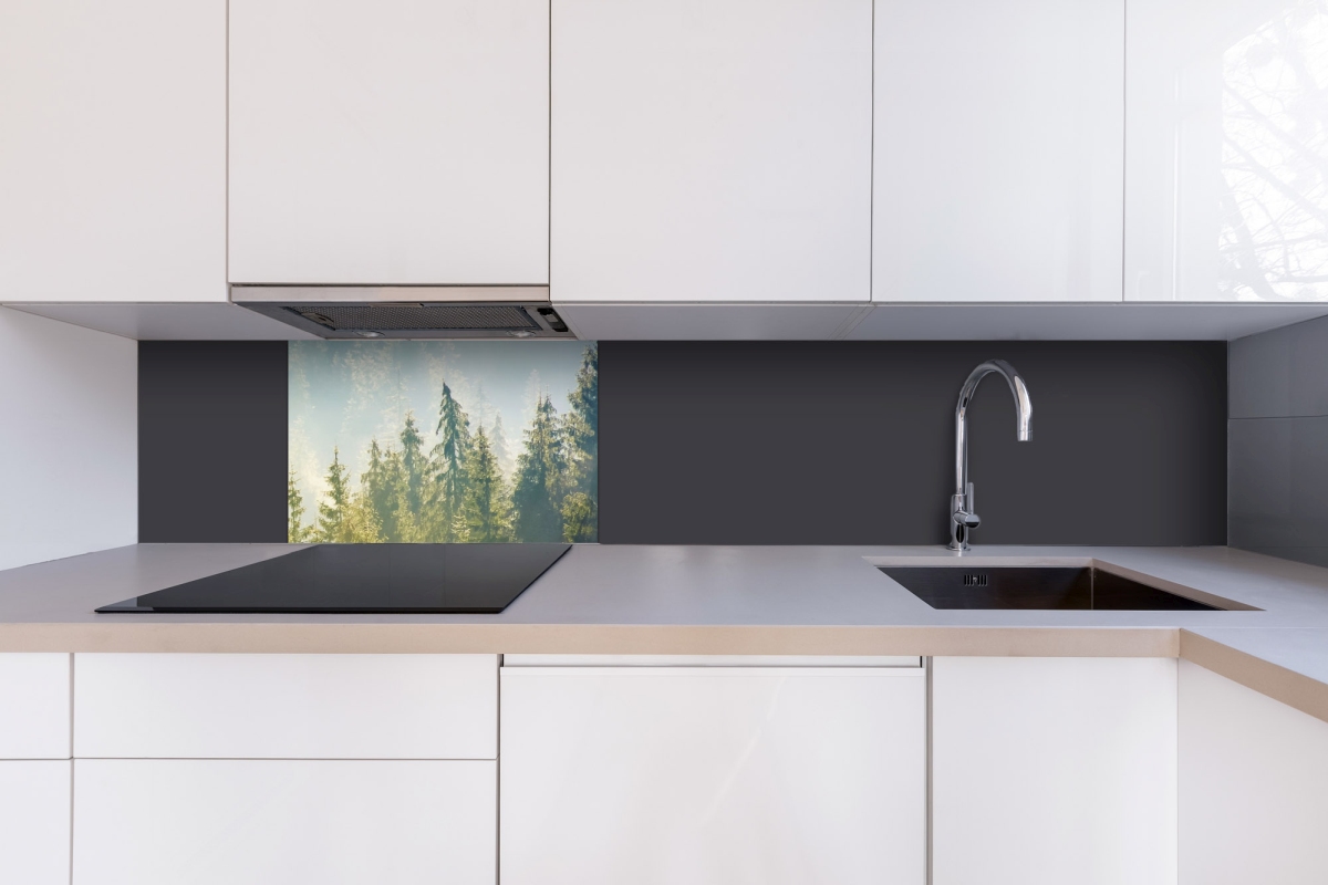 Placă decorativă dibond pentru bucătărie Ceață peste pădure - 60 x 40 cm