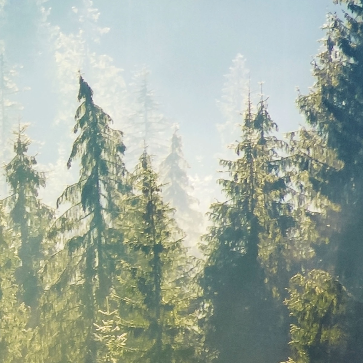 Placă decorativă dibond pentru bucătărie Ceață peste pădure - 60 x 60 cm
