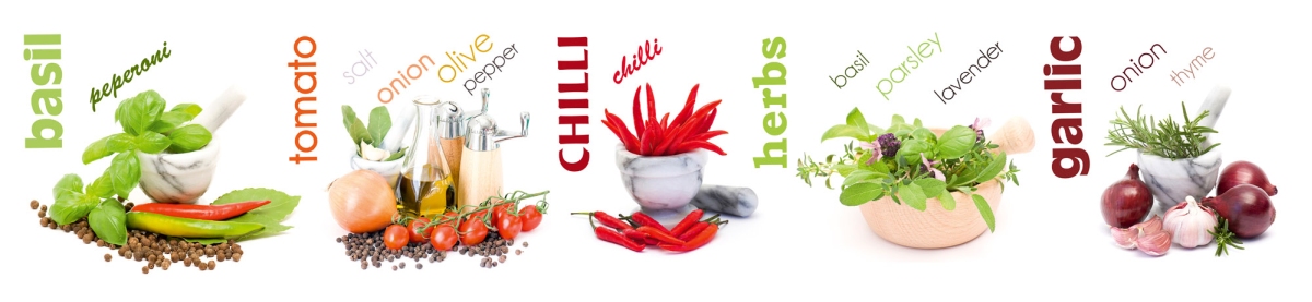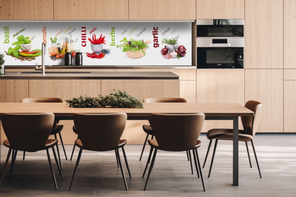 Placă decorativă dibond pentru bucătărie Condimente - 260 x 60 cm