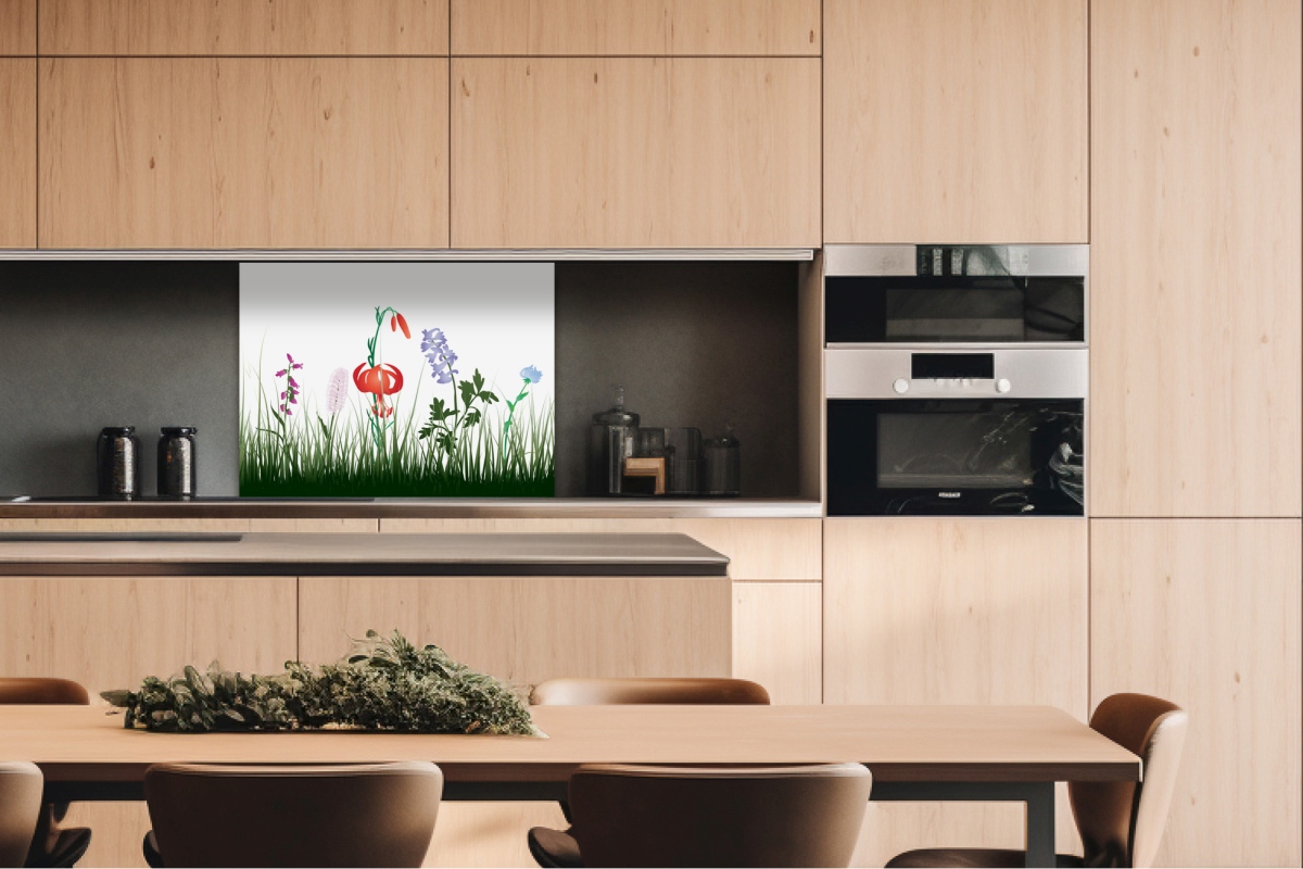 Placă decorativă dibond pentru bucătărie Design de pajiște - 80 x 60 cm