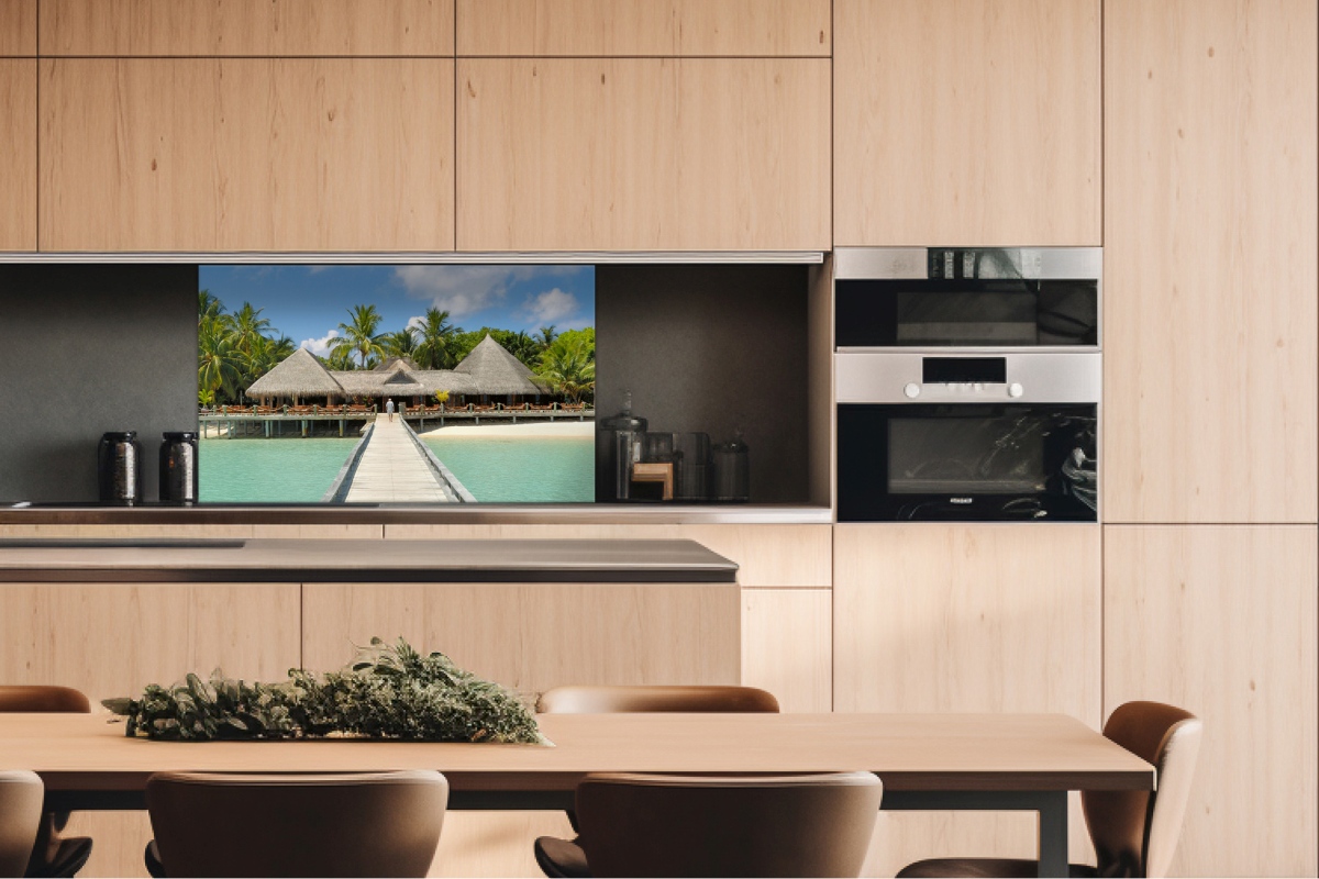 Cel mai nou trend în echipamentele de bucătărie sunt panourile imprimate pentru spațiul dintre blatul și mobilierul de bucătărie. Dibond, adică placa compozită din aluminiu, este o soluție potrivită pentru a înfrumuseța bucătăria dumneavoastră. În oferta noastră îl găsiți în mai multe dimensiuni, iar grosimea plăcii dibond este de 3 mm, varianta cea mai solicitată.