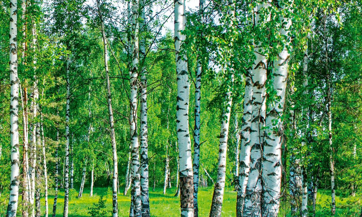 Placă decorativă dibond pentru bucătărie Dumbravă de mesteceni - 100 x 60 cm
