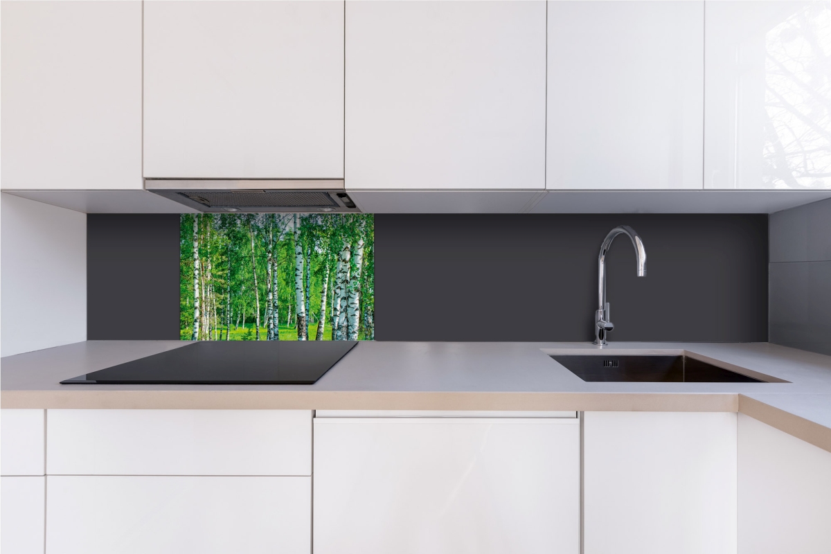 Placă decorativă dibond pentru bucătărie Dumbravă de mesteceni - 60 x 40 cm