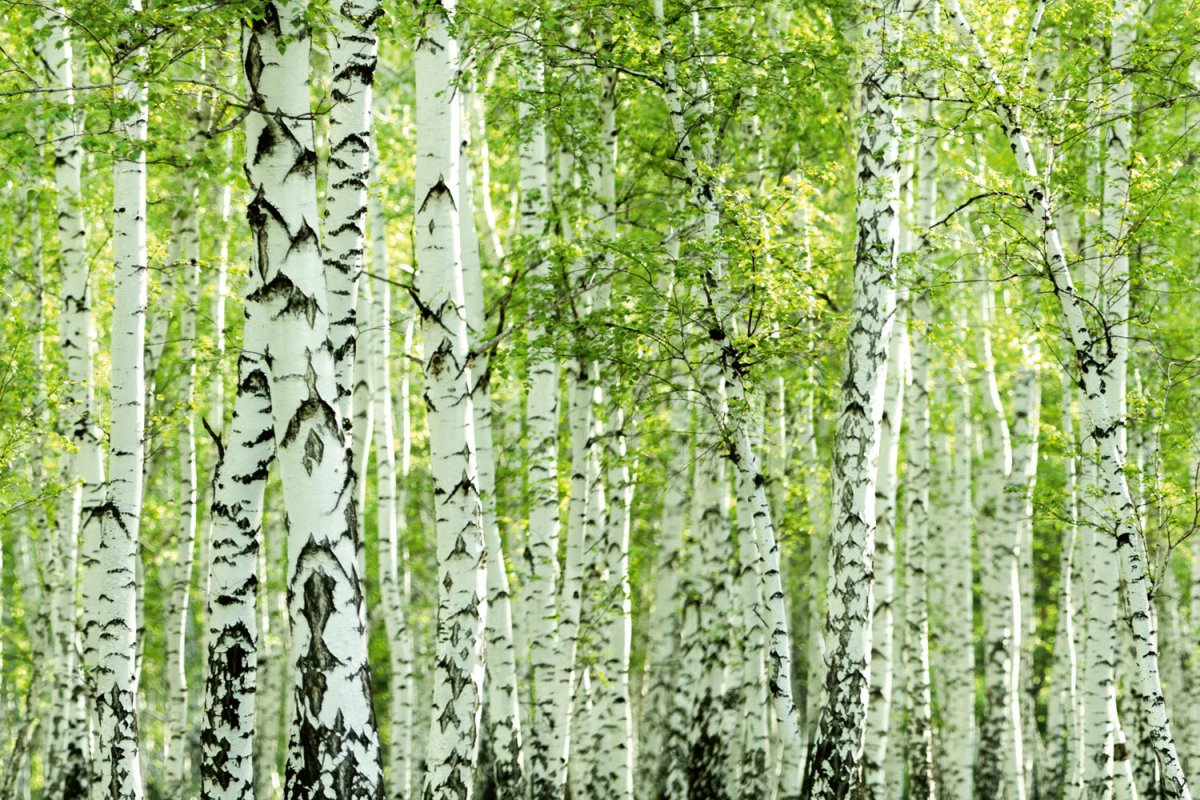 Placă decorativă dibond pentru bucătărie Dumbravă de mesteceni de primăvară - 60 x 40 cm