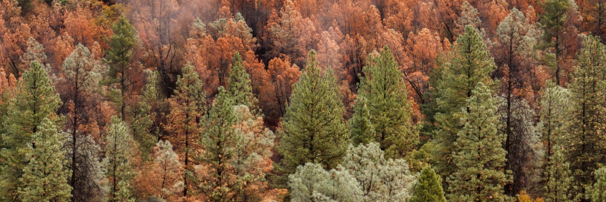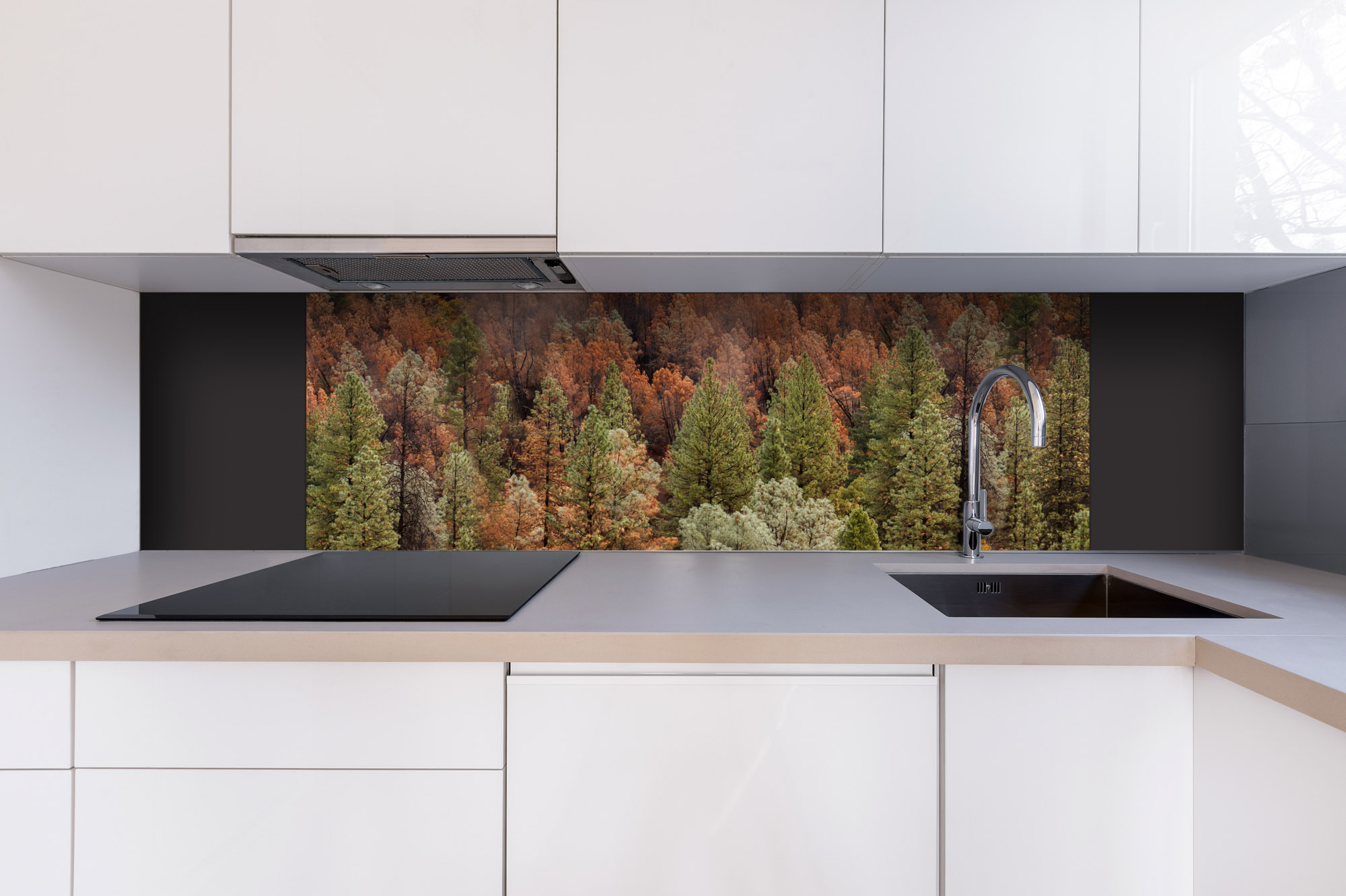 Placă decorativă dibond pentru bucătărie Dumbravă de pini colorată - 180 x 60 cm