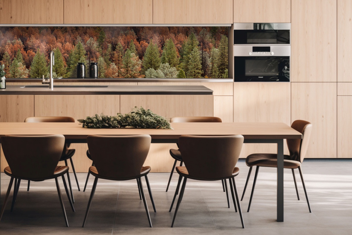 Placă decorativă dibond pentru bucătărie Dumbravă de pini colorată - 260 x 60 cm
