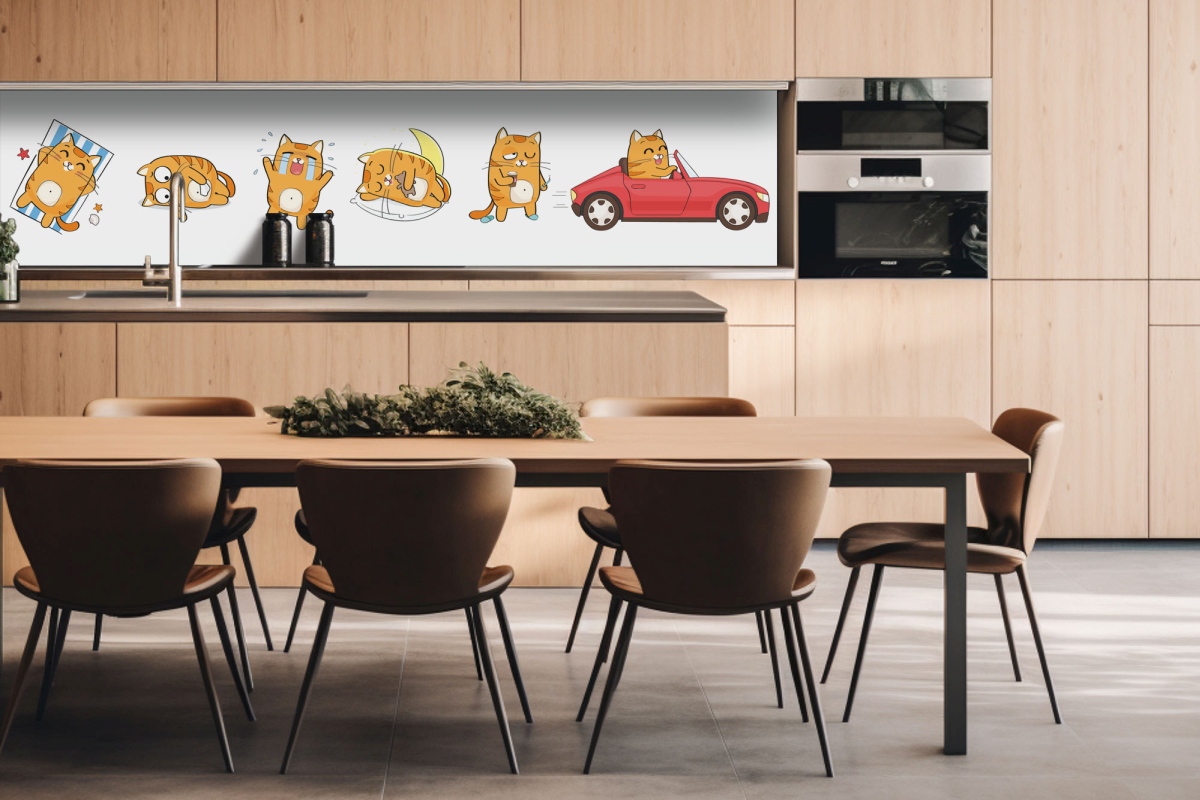Placă decorativă dibond pentru bucătărie Emoții de pisică - 260 x 60 cm