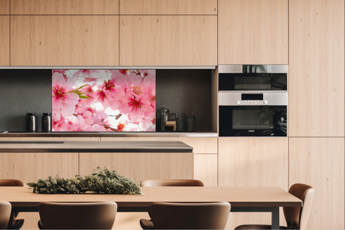 Placă decorativă dibond pentru bucătărie Flori de măr - 100 x 60 cm