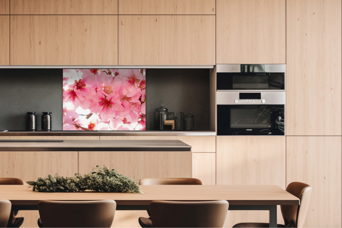 Placă decorativă dibond pentru bucătărie Flori de măr - 80 x 60 cm