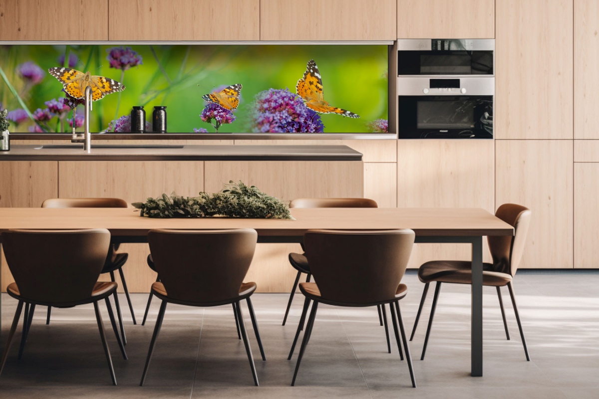 Placă decorativă dibond pentru bucătărie Fluturi - 260 x 60 cm