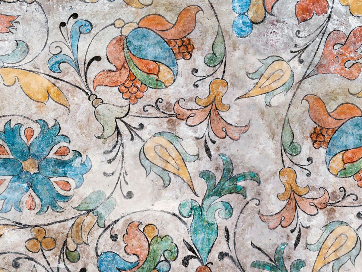 Placă decorativă dibond pentru bucătărie Fresca florală italiană - 80 x 60 cm