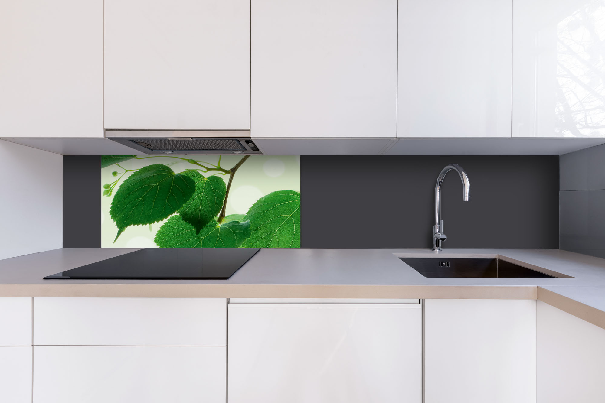 Placă decorativă dibond pentru bucătărie Frunze verzi - 80 x 40 cm