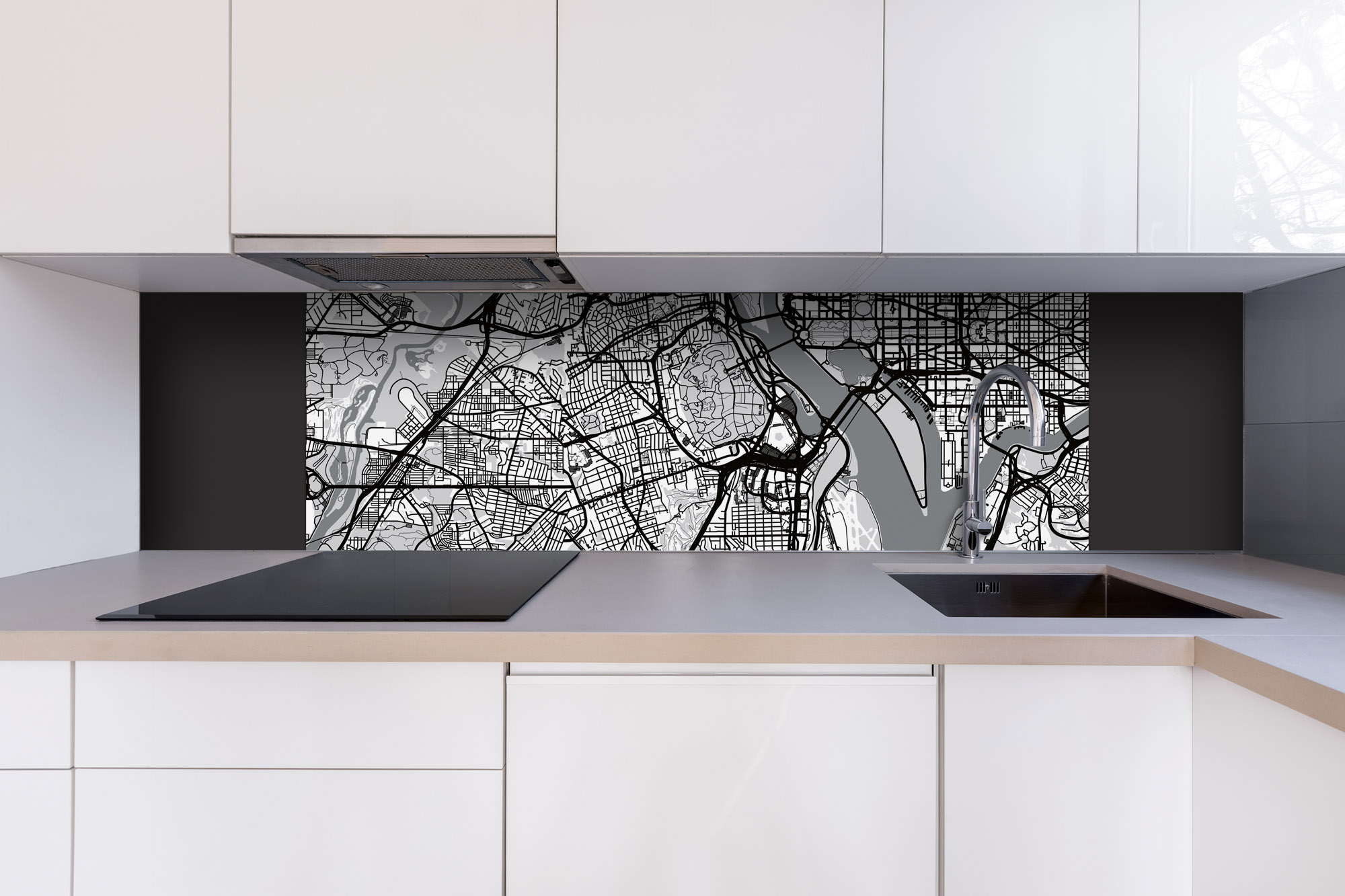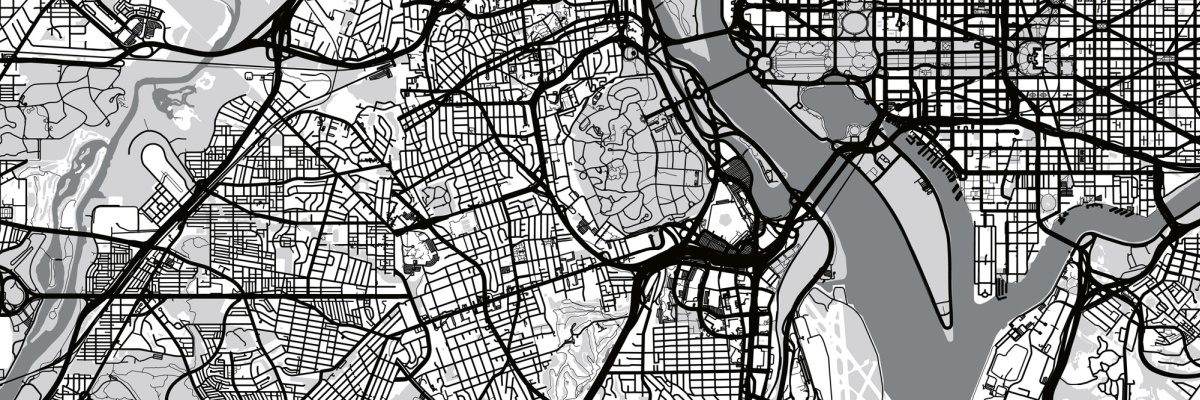 Placă decorativă dibond pentru bucătărie Hartă a orașului Washington D.C. - 180 x 60 cm