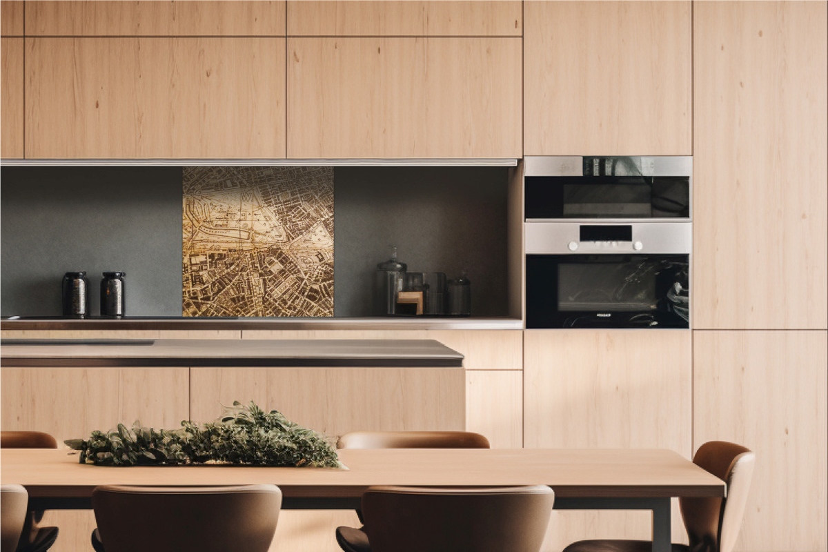 Cel mai nou trend în echipamentele de bucătărie sunt panourile imprimate pentru spațiul dintre blatul și mobilierul de bucătărie. Dibond, adică placa compozită din aluminiu, este o soluție potrivită pentru a înfrumuseța bucătăria dumneavoastră. În oferta noastră îl găsiți în mai multe dimensiuni, iar grosimea plăcii dibond este de 3 mm, varianta cea mai solicitată.