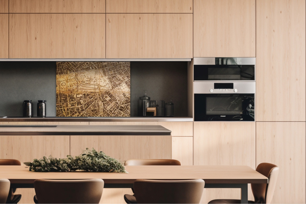 Cel mai nou trend în echipamentele de bucătărie sunt panourile imprimate pentru spațiul dintre blatul și mobilierul de bucătărie. Dibond, adică placa compozită din aluminiu, este o soluție potrivită pentru a înfrumuseța bucătăria dumneavoastră. În oferta noastră îl găsiți în mai multe dimensiuni, iar grosimea plăcii dibond este de 3 mm, varianta cea mai solicitată.