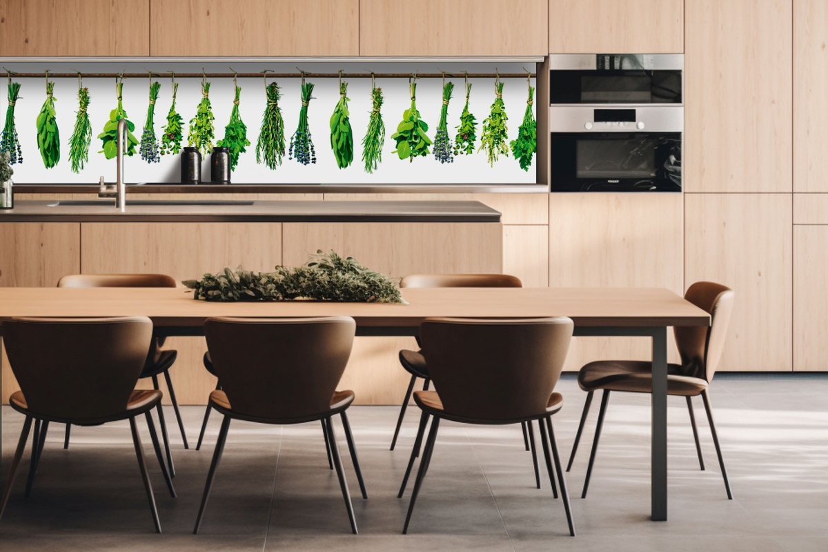Placă decorativă dibond pentru bucătărie Ierburi - 260 x 60 cm