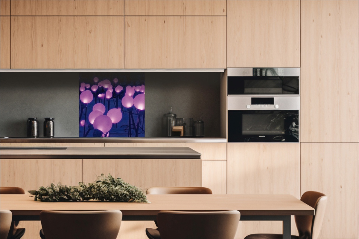 Placă decorativă dibond pentru bucătărie Iluminare violetă a grădinii - 60 x 60 cm