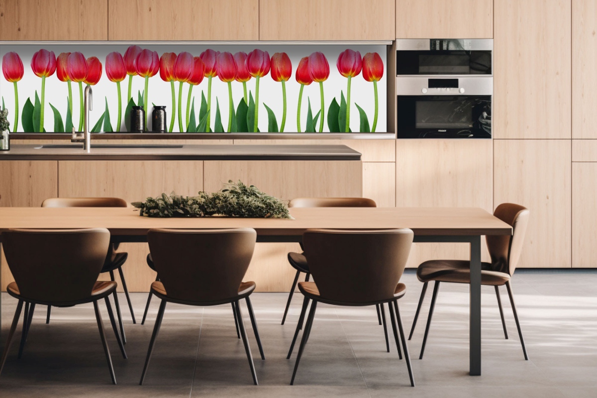 Placă decorativă dibond pentru bucătărie Lalele - 260 x 60 cm