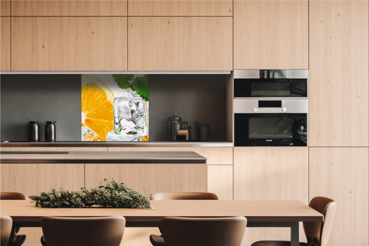 Placă decorativă dibond pentru bucătărie Lămâie și gheață - 60 x 60 cm