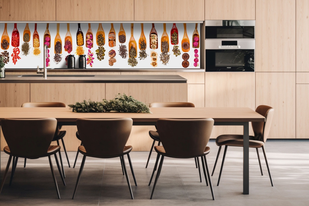 Placă decorativă dibond pentru bucătărie Lopăți pentru ierburi - 260 x 60 cm