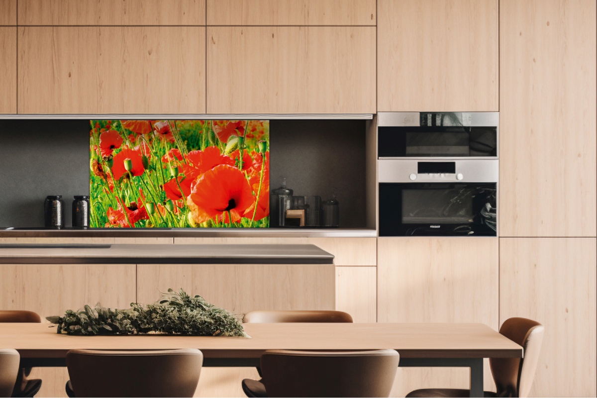 Placă decorativă dibond pentru bucătărie Mac roșii - 100 x 60 cm
