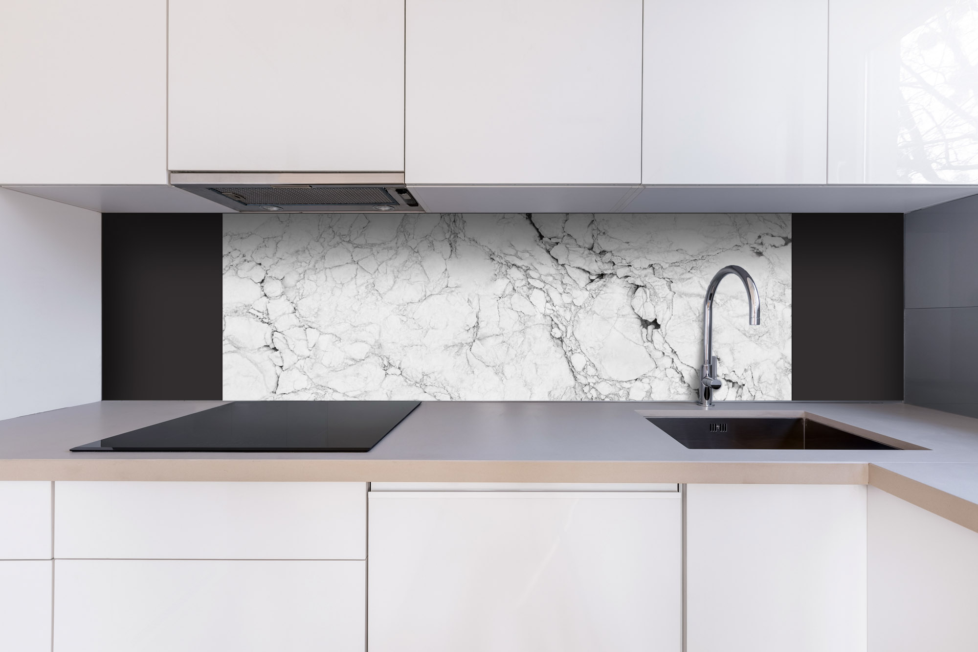 Placă decorativă dibond pentru bucătărie Marmură albă - 180 x 60 cm