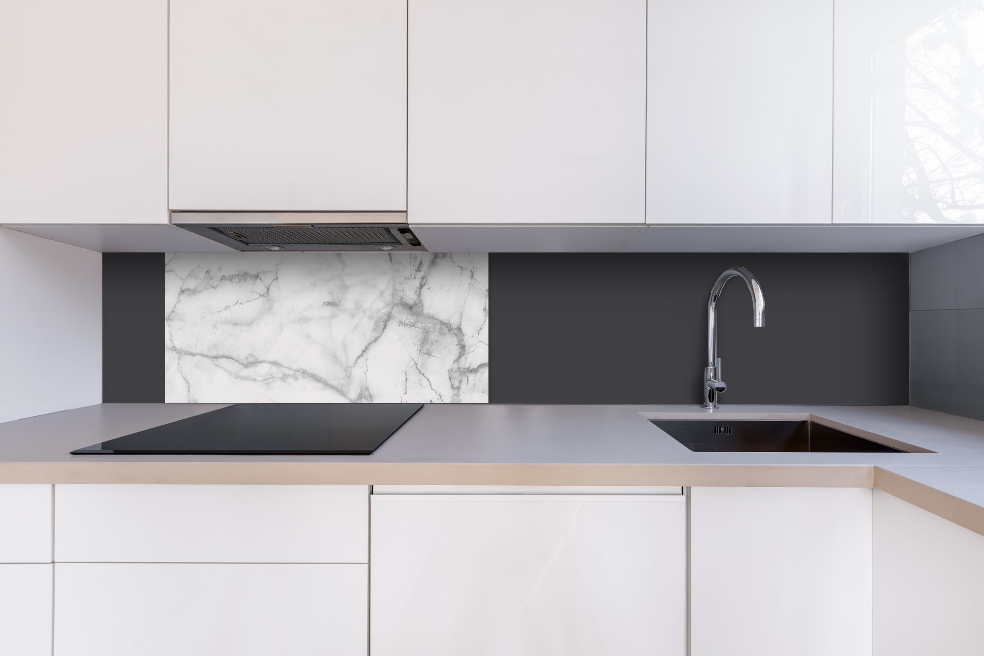 Placă decorativă dibond pentru bucătărie Marmură albă - 80 x 40 cm