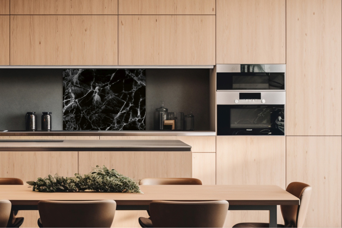 Placă decorativă dibond pentru bucătărie Marmură neagră - 80 x 60 cm