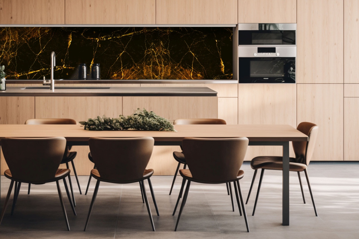 Placă decorativă dibond pentru bucătărie Marmură Neagră și Aurie - 260 x 60 cm