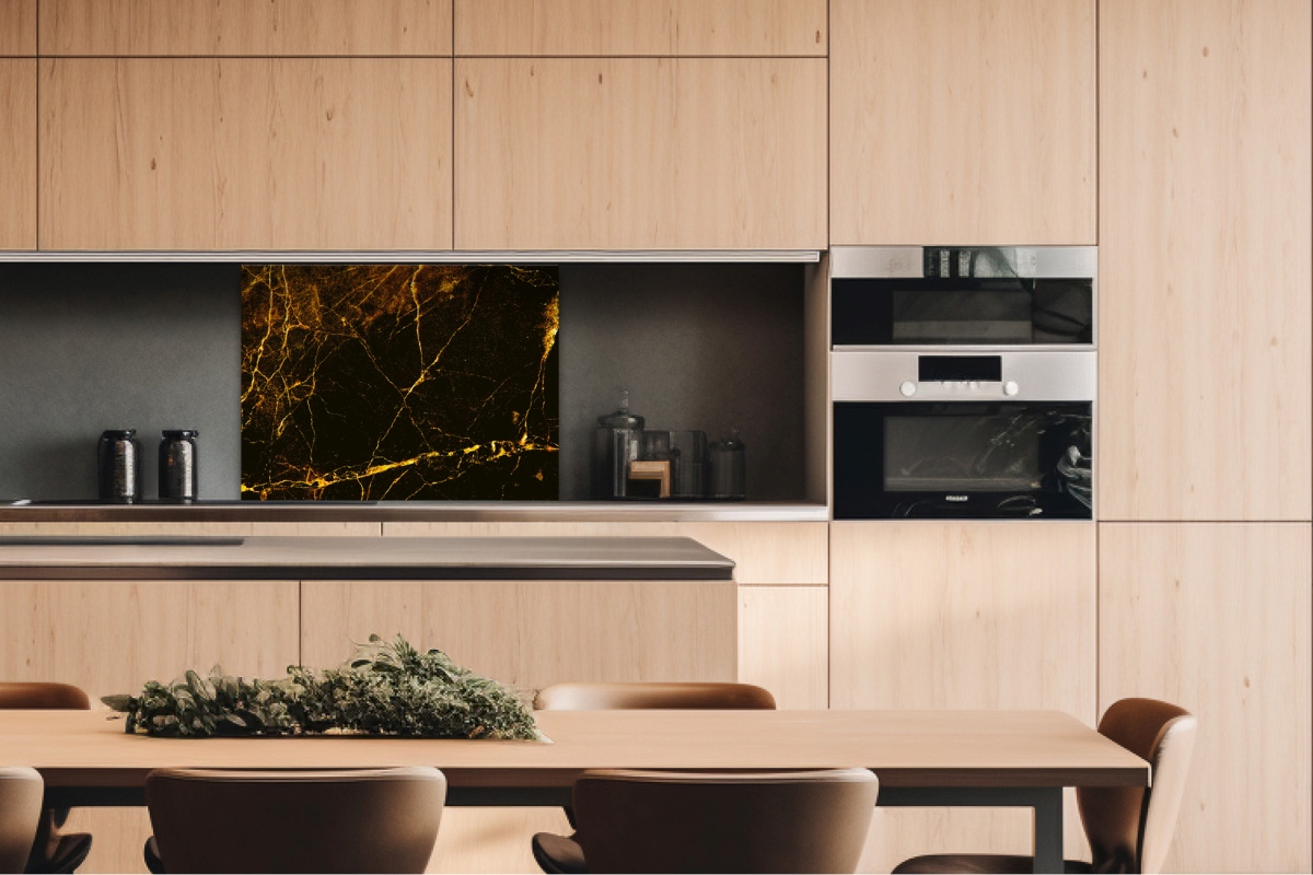 Placă decorativă dibond pentru bucătărie Marmură Neagră și Aurie - 80 x 60 cm