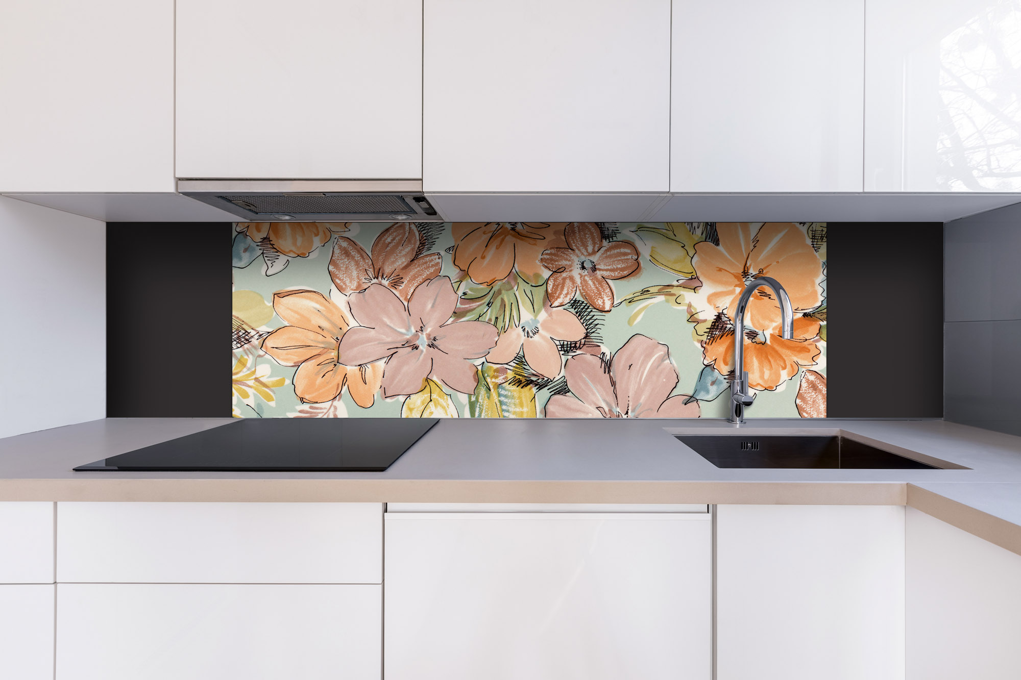 Placă decorativă dibond pentru bucătărie Model floral colorat - 180 x 60 cm