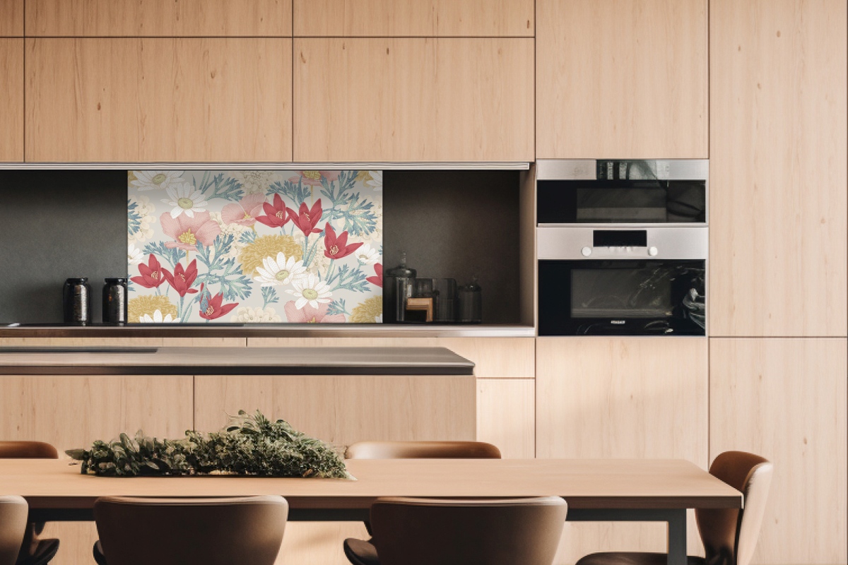 Placă decorativă dibond pentru bucătărie Model floral vintage - 100 x 60 cm